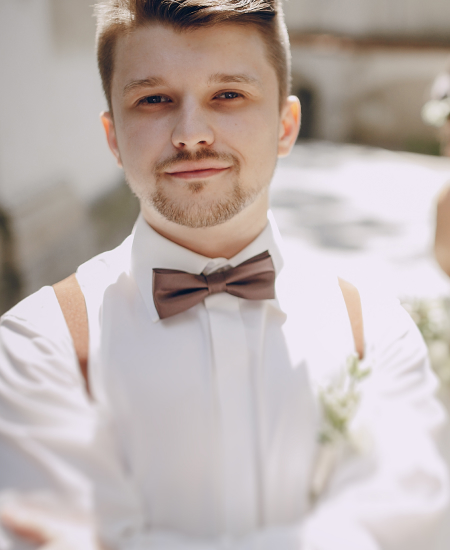 We met on a beautiful day at a mutual friend's wedding. Our eyes met, and the rest is history. We danced the night away and exchanged phone numbers. Love blossomed. Our first date was magical, and we knew it was fate.
